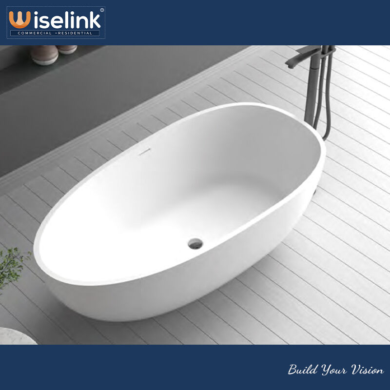 This solid surface freestanding tub combines reliable material quality, thoughtful design, and user-friendly functionality—seamlessly blending practicality with minimalist aesthetics. The seamless solid surface delivers long-lasting durability, easy cleaning, and antibacterial protection; the ergonomic oval shape ensures comfortable bathing; flexible placement and classic coloring adapt to diverse spaces; and simple installation reduces entry barriers. More than just a functional bathing fixture, it’s a practical masterpiece that enhances bathroom style and improves quality of life—perfect for families seeking convenience, comfort, and aesthetic appeal.