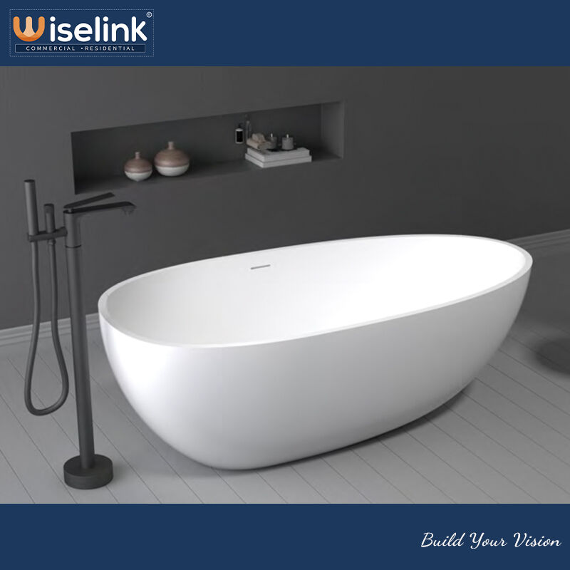 This 1600x800x540mm oval solid surface freestanding tub centers on "pragmatism + minimalist aesthetics," perfectly balancing material performance, comfort, and spatial adaptability. Abandoning overly complex designs, it stands out with seamless solid surface construction, ergonomic shaping, classic black-and-white color matching, and easy installation—making it an ideal choice for modern bathrooms. Whether for compact small spaces or spacious large bathrooms, and whether your style is contemporary, minimalist, or even traditional, this tub integrates effortlessly, delivering a clean, comfortable, and long-lasting daily bathing experience.