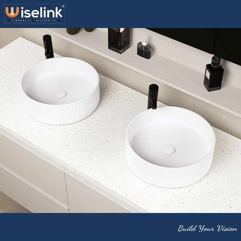 Wiselink Solid Surface Double Sink Counter Top Basin is crafted around three core strengths—integrated double-sink design, high-quality solid surface material, and all-scenario adaptability—specifically tailored for multi-person families and high-frequency use bathroom scenarios. By integrating two independent washbasins into one unit, it not only saves countertop space but also supports simultaneous use by two people, completely eliminating the hassle of queuing during morning and evening washing peaks. Equipped with practical features such as stain and bacteria resistance, lightweight durability, and splash-proof design, paired with a minimalist neutral appearance and easy installation, it fits various bathroom styles. Additionally, it incorporates an eco-friendly material concept, becoming a modern bathroom preferred choice that balances convenience, durability, and environmental friendliness.